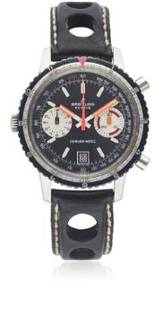 A GENTLEMAN'S STAINLESS STEEL BREITLING CHRONO-MATIC CHRONOGRAPH WRIST WATCH CIRCA 1969, REF. 2110Movement: 17J, automatic, cal. 11, signed Breitling Watch Ltd.Case: Diameter approx. 39mm, screw back, signed Breitling, numbered, MH rotating bezel, Breitling crown. Strap: Leather. CONDITION REPORTDial: Original dial in excellent condition.Movement: Working at present.Case: In excellent condition, with some light scratches due to general use.Strap/Bracelet: In very good condition.
