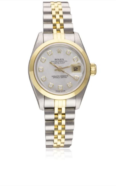 A LADIES STEEL & GOLD ROLEX OYSTER PERPETUAL DATEJUST BRACELET WATCHCIRCA 1995, REF. 69163 WITH ORIGINAL MOTHER OF PEARL DIAMOND DIALMovement: 29J, automatic chronometer, cal. 2135, signed Rolex S.A., numbered.Case: Diameter approx. 26mm, Oyster case, signed Montres Rolex S.A., numbered, 18k solid gold smooth bezel, sapphire crystal, Rolex crown.Bracelet: Original Rolex Jubilee steel & 18k solid gold bracelet. CONDITION REPORTDial: Original dial in excellent condition.Movement: Working at present.Case: In excellent condition.Strap/Bracelet: In excellent condition.