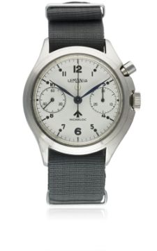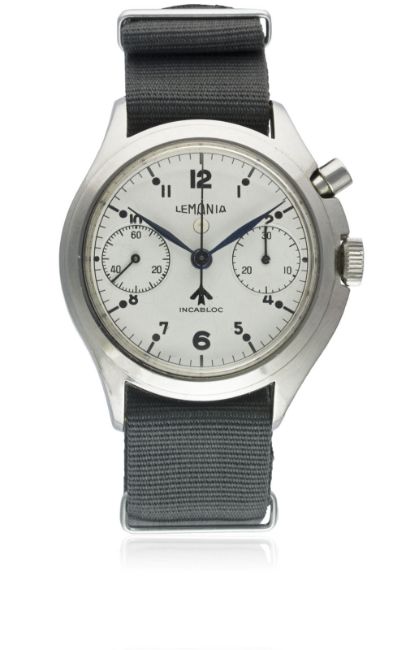 A VERY RARE GENTLEMAN'S STAINLESS STEEL BRITISH MILITARY ROYAL NAVY NUCLEAR SUBMARINE LEMANIA SINGLE BUTTON CHRONOGRAPH WRIST WATCH CIRCA 1960s  Movement: Manual wind, non-incabloc.Case: Diameter approx. 40mm, asymmetric, screw back, numbered, issue markings ^ 0552/924-3312 (3306 crossed out) 80582. Strap: NATO. These watches were issued to personnel onboard nuclear submarines. The dials & hands did not contain any luminous material which therefore could not interfere with radiation detectors onboard (giving false positive readings). CONDITION REPORTDial: Original dial in excellent condition.Movement: Working at present.Case: In excellent condition, with some small scratches due to use.Strap/Bracelet: In excellent condition.