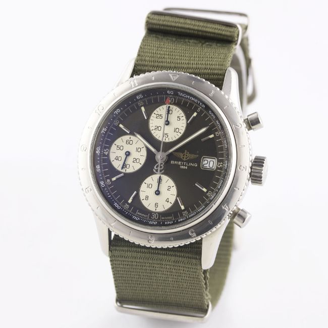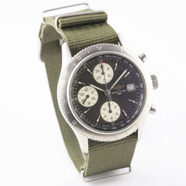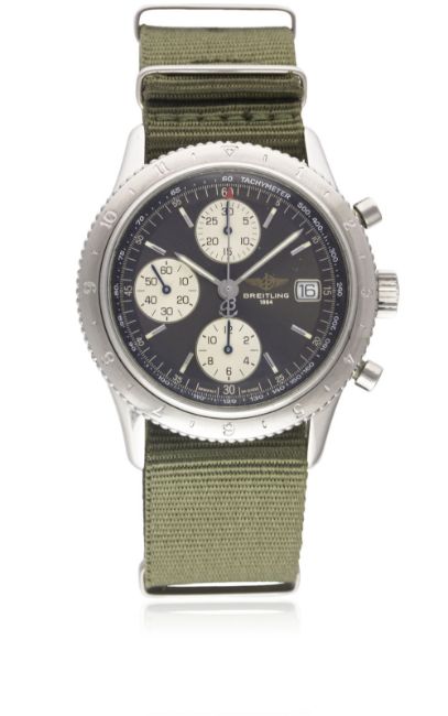 A RARE GENTLEMAN'S STAINLESS STEEL BREITLING NAVITIMER AVI AUTOMATIC CHRONOGRAPH WRIST WATCH CIRCA 1990s, REF. A13023.1Movement: Automatic, signed Breitling.Case: Diameter approx. 41mm, screw back, signed Breitling, numbered, rotating 12 hour AVI "beaded" bezel, Breitling crown.Strap: NATO. CONDITION REPORTDial: Original dial in excellent condition.Movement: Working at present.Case: In excellent condition, with some light scratches due to general use.Strap/Bracelet: In excellent condition.