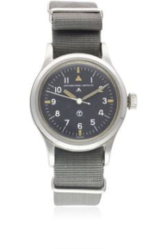 A RARE GENTLEMAN'S STAINLESS STEEL BRITISH MILITARY IWC MARK 11 RAF PILOTS WRIST WATCH DATED 1950Movement: Manual wind, hacking seconds, cal. 89, signed International Watch Co with military arrow, numbered.Case: Diameter approx. 36mm, fixed bars, screw back, signed International Watch Co, issue markings ^ 6B/346 699/50, anti-magnetic dust cover.Strap: NATO. CONDITION REPORTDial: Original MOD dial in excellent condition, showing some small signs of age.Movement: Working at present.Case: In very good condition, with some small scratches due to general use.Strap/Bracelet: In good condition.