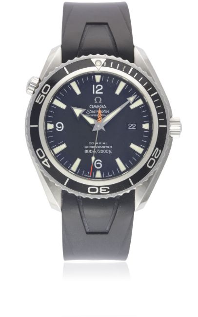 A GENTLEMAN'S STAINLESS STEEL OMEGA SEAMASTER PROFESSIONAL PLANET OCEAN CO-AXIAL CHRONOMETER WRIST WATCH CIRCA 2007, REF. 2900.50.91 "CASINO ROYALE" LIMITED EDITION OF 5007 PIECESMovement: Automatic co-axial chronometer, cal. 2500, signed Omega, numbered.Case: Diameter approx. 45mm, screw back, Casino Royale motif embossed on case back, signed Omega, numbered, 60 minute rotating bezel, helium escape valve, Omega screw-down crown.Strap: Omega Planet Ocean rubber strap & pin buckle. CONDITION REPORTDial: Original dial in excellent condition, showing some very small signs of age.Movement: Working at present.Case: In excellent condition, with some small scratches due to general use.Strap/Bracelet: In excellent condition.