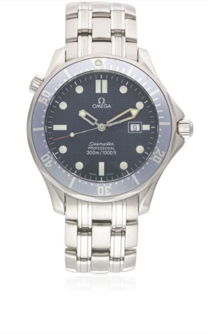 A GENTLEMAN'S LARGE SIZE STAINLESS STEEL OMEGA SEAMASTER PROFESSIONAL 300M BRACELET WATCH CIRCA 1999 Movement: Quartz, signed Omega. Case: Diameter approx. 42mm, screw back, Seamaster emblem embossed on case back, signed Omega Watch Co, numbered, faded rotating 60 minute bezel, helium escape valve, Omega crowns.Bracelet: Omega Seamaster bracelet, numbered (No. 62) 1503/825. CONDITION REPORTDial: Original dial in excellent condition, some pitting to hands.Movement: Working at present.Case: In good condition, some scratches to bezel insert.Strap/Bracelet: In good condition, with some small scratches due to general use.