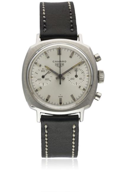 A GENTLEMAN'S STAINLESS STEEL HEUER CAMARO CHRONOGRAPH WRIST WATCH CIRCA 1970, REF. 7743SMovement: 17J, manual wind, Valjoux cal. 7730, signed Heuer-Leonidas SA.Case: Width approx. 37mm, screw back, signed Heuer-Leonidas S.A., numbered, Heuer crown.Strap: Leather. CONDITION REPORTDial: Original dial in excellent condition.Movement: Working at present.Case: In excellent condition, with some light scratches due to general use.Strap/Bracelet: In very good condition.