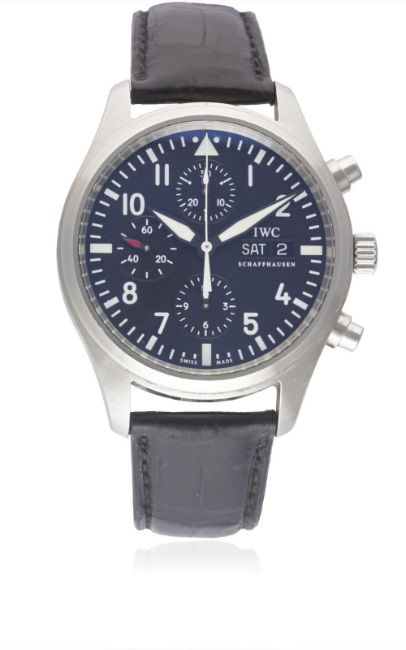 A GENTLEMAN'S STAINLESS STEEL IWC FLIEGERUHR AUTOMATIC CHRONOGRAPH WRIST WATCH DATED 2006, REF. IW371701 WITH ORIGINAL GUARANTEE & BOOKLETSMovement: Automatic, signed International Watch Co., numbered.Case: Diameter approx. 42mm, screw back, signed International Watch Co. Fliegeruhr, numbered, IWC crown.Strap: Original IWC leather strap & deployment clasp. CONDITION REPORTDial: Original dial in excellent condition.Movement: Working at present.Case: In excellent condition, with some small scratches due to general use.Strap/Bracelet: In good condition.