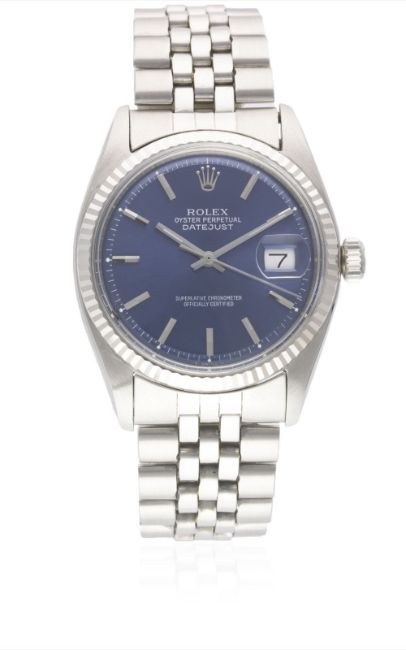 A GENTLEMAN'S STEEL & WHITE GOLD ROLEX OYSTER PERPETUAL DATEJUST BRACELET WATCHCIRCA 1971, REF. 1601Movement: 26J, automatic chronometer, cal. 1570, signed Montres Rolex S.A., numbered.Case: Diameter approx. 36mm, Oyster case, signed Montres Rolex S.A., numbered, solid white gold fluted bezel, Rolex crown.Bracelet: Rolex Jubilee bracelet, numbered 6251H/55. CONDITION REPORTDial: Dial in excellent condition.Movement: Working at present.Case: In excellent condition.Strap/Bracelet: In excellent condition.