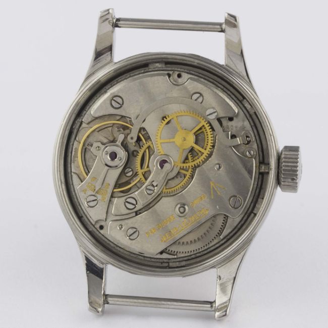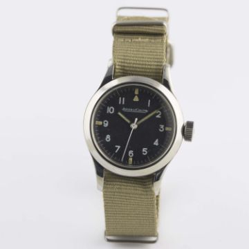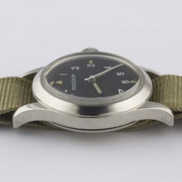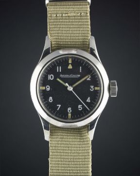 A VERY RARE GENTLEMAN'S STAINLESS STEEL ROYAL AUSTRALIAN AIR FORCE JAEGER LECOULTRE MARK 11 PILOTS WRIST WATCH CIRCA 1950Movement: Manual wind, hacking seconds, cal. 488/Sbr, signed Jaeger-LeCoultre with military arrow, numbered.Case: Diameter approx. 35mm, fixed bars, screw back, signed LeCoultre Co, issue markings ^ G.6B/346 345, anti-magnetic dust cover.Strap: NATO. CONDITION REPORTDial: Original dial in excellent condition, showing some small signs of age.Movement: Working at present.Case: In very good condition, with some small scratches due to use.Strap/Bracelet: In excellent condition.