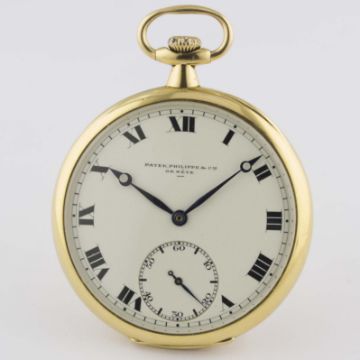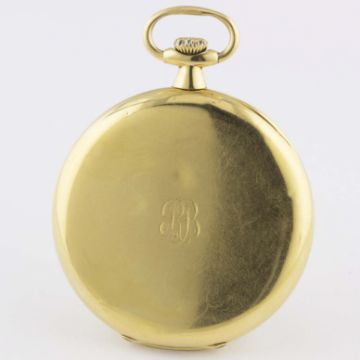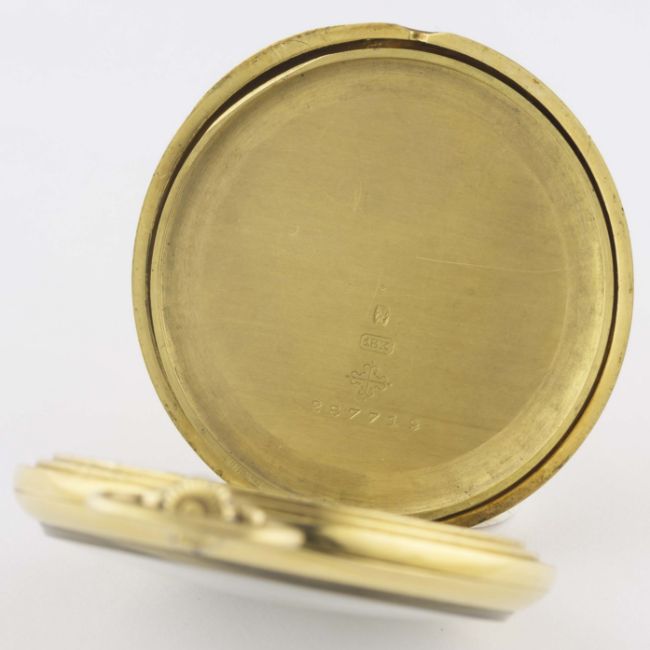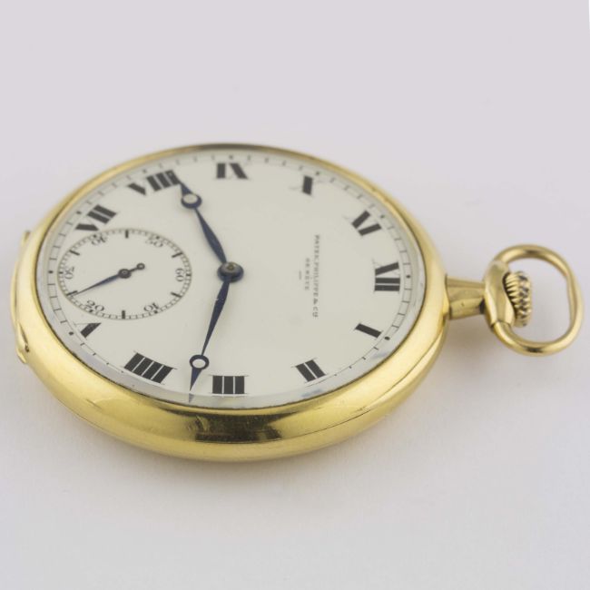 AN 18K SOLID GOLD PATEK PHILIPPE POCKET WATCH CIRCA 1910 Movement: Manual back-wind, signed Patek Philippe & Cie, numbered.Case: Diameter approx. 46mm, signed Patek Philippe & Cie, numbered, 18k hallmark.     CONDITION REPORTDial: Original dial in excellent condition. Movement: Working at present. Case: In very good condition, with some scratches and small indentations, small initials engraved on the case back.