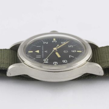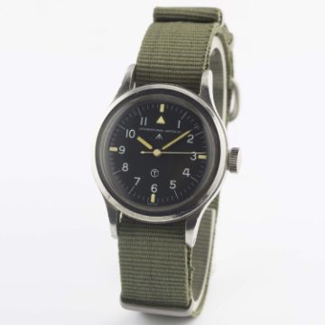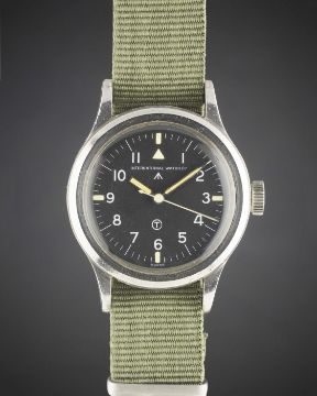 A RARE GENTLEMAN'S STAINLESS STEEL BRITISH MILITARY IWC MARK 11 RAF PILOTS WRIST WATCH DATED 1948, WITH EARLY ISSUE NUMBER 195/48Movement: Manual wind, hacking seconds, cal. 89, signed International Watch Co with military arrow, numbered.Case: Diameter approx. 36mm, fixed bars, screw back, signed IWC, issue markings ^ 6B/346 195/48, anti-magnetic dust cover.Strap: NATO. CONDITION REPORTDial: Original MOD dial in very good condition, some signs of wear to edge.Movement: Working at present.Case: In very good condition, with small scratches due to use.Strap/Bracelet: In excellent condition.