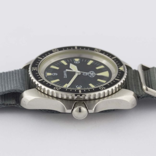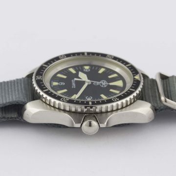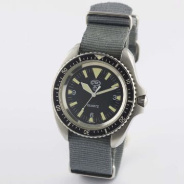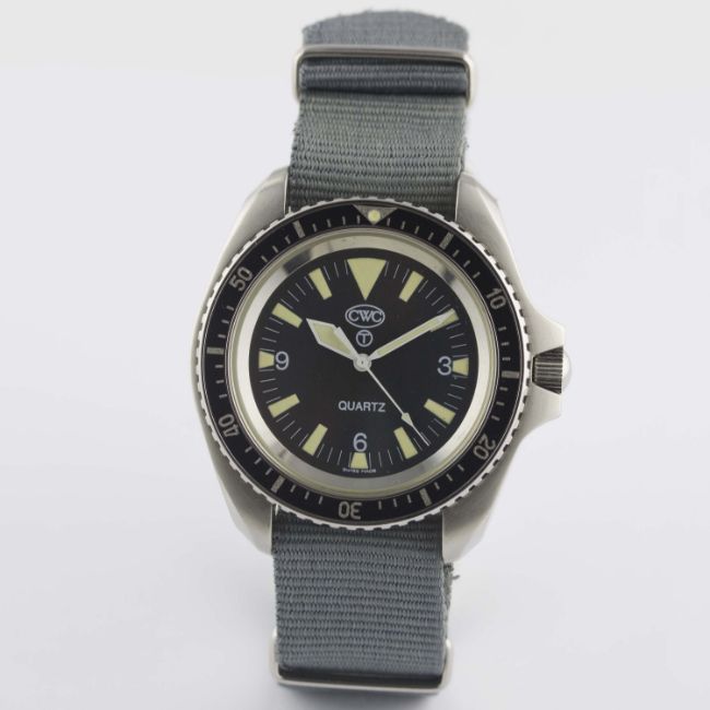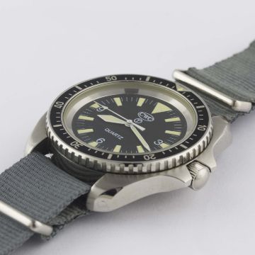 A GENTLEMAN'S STAINLESS STEEL BRITISH MILITARY ISSUED CWC QUARTZ ROYAL NAVY DIVERS WRIST WATCH DATED 1995Movement: Quartz.Case: Diameter approx. 42mm, fixed bars, screw back, issue markings 0552/6645-99-7573314 ^ 112/95, 60 minute rotating bezel, screw-down crown.Strap: NATO. CONDITION REPORTDial: Original dial in excellent condition.Movement: Working at present.Case: In excellent condition, with some small scratches due to use.Strap/Bracelet: In excellent condition.