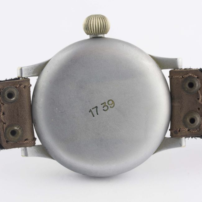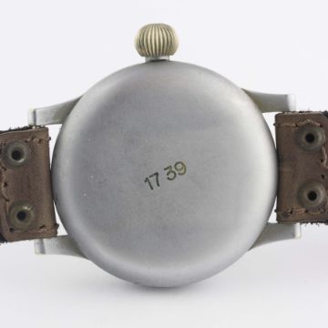 A RARE GERMAN MILITARY LUFTWAFFE B.UHR WEMPE NAVIGATORS OBSERVATION WATCH CIRCA 1940, REF. FL23883 "TYPE B" DIAL Movement: Manual wind, cal. 31, hacking seconds, signed Wempe.Case: Diameter approx. 55mm, fixed bars, snap back, inside case back marked B-Uhr - Thommen, Gerat Nr 127-560A1, Werk Nr B.L.T 1739, Anforderz FL 23883, Hersteller Wempe Hamburg, outer case back marked 1739, original crown. Strap: Leather. CONDITION REPORTDial: Original dial in excellent condition.Movement: Working at present.Case: In excellent condition, with light scratches due to use, plexiglass heavily crazed.Strap/Bracelet: In excellent condition.