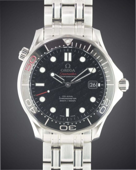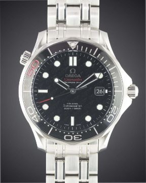 A GENTLEMAN'S STAINLESS STEEL OMEGA SEAMASTER PROFESSIONAL 300M BRACELET WATCH DATED 2012, REF. 21230412001005 JAMES BOND 007 50TH ANNIVERSARY LIMITED EDITION OF 11007 PIECES, WITH 007 MOTIF DIAL, ACCOMPANIED BY THE ORIGINAL BOX, PAPERS & CERTIFICATE OF AUTHENTICITYMovement: Automatic co-axial chronometer, cal. 2507, signed Omega, numbered. Case: Diameter approx. 41mm, screw back with gun barrel design & rotating "bullet" decoration to centre, signed Omega, numbered, 60 minute rotating ceramic bezel, sapphire crystal, Omega crowns.Bracelet: Original Omega bracelet, numbered 62/1515/816. CONDITION REPORTDial: Original dial in excellent condition.Movement: Working at present.Case: In excellent condition.Strap/Bracelet: In excellent condition.The watch looks to have hardly been worn with case stickers to the crystal, case back and clasp.