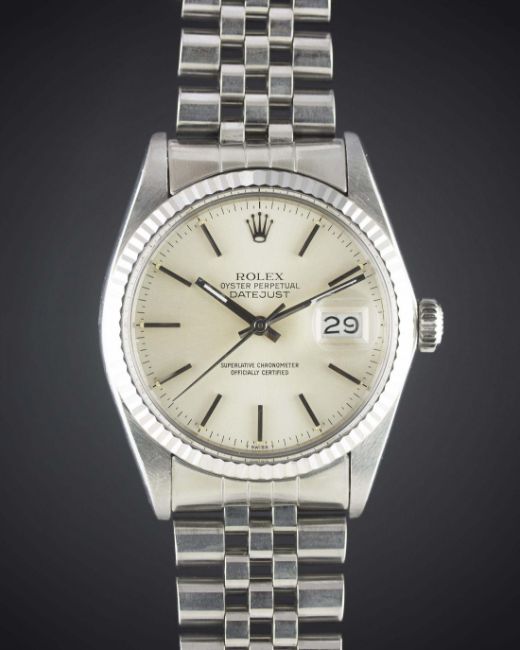 A GENTLEMAN'S STEEL & WHITE GOLD ROLEX OYSTER PERPETUAL DATEJUST BRACELET WATCHCIRCA 1987, REF. 16014 Movement: 27J, automatic chronometer, quick-set date, cal. 3035, signed Rolex S.A.Case: Diameter approx. 36mm, Oyster case, signed Montres Rolex S.A., R serial no., solid white gold fluted bezel, Rolex crown.Bracelet: Rolex Jubilee bracelet, numbered B/62510H/555. CONDITION REPORTDial: Original dial in excellent condition.Movement: Working at present.Case: In very good condition, with some small scratches due to general use.Strap/Bracelet: In very good condition, with light scratches due to general use.