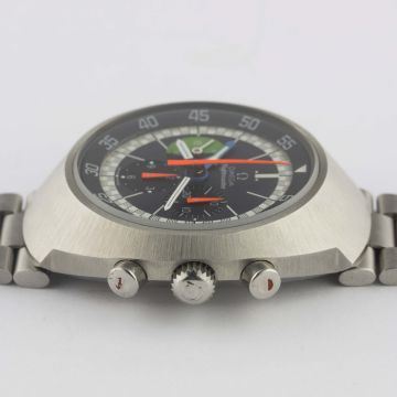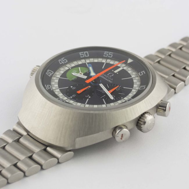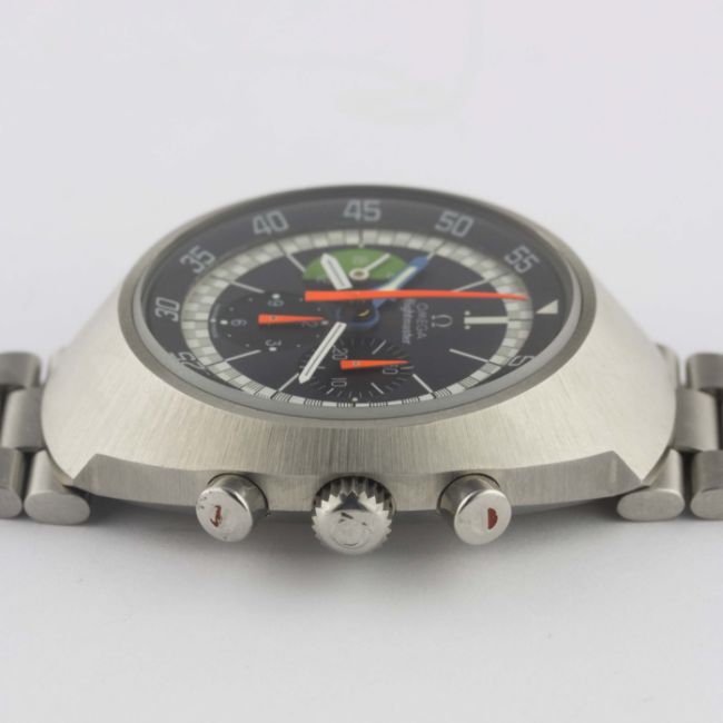 A GENTLEMAN'S STAINLESS STEEL OMEGA FLIGHTMASTER CHRONOGRAPH BRACELET WATCH CIRCA 1972, REF. 145.013 WITH "1ST GEN" SERVICE DIALMovement: 17J, manual wind, cal. 910, signed Omega, numbered. Case: Diameter approx. 43mm, screw back, Flightmaster emblem engraved on case back, signed Omega Watch Co., Omega crowns & pushers.Bracelet: Original Omega bracelet, numbered (32) 1162/172. CONDITION REPORTDial: Original dial in excellent condition.Movement: Working at present.Case: In excellent condition.Strap/Bracelet: In excellent condition.
