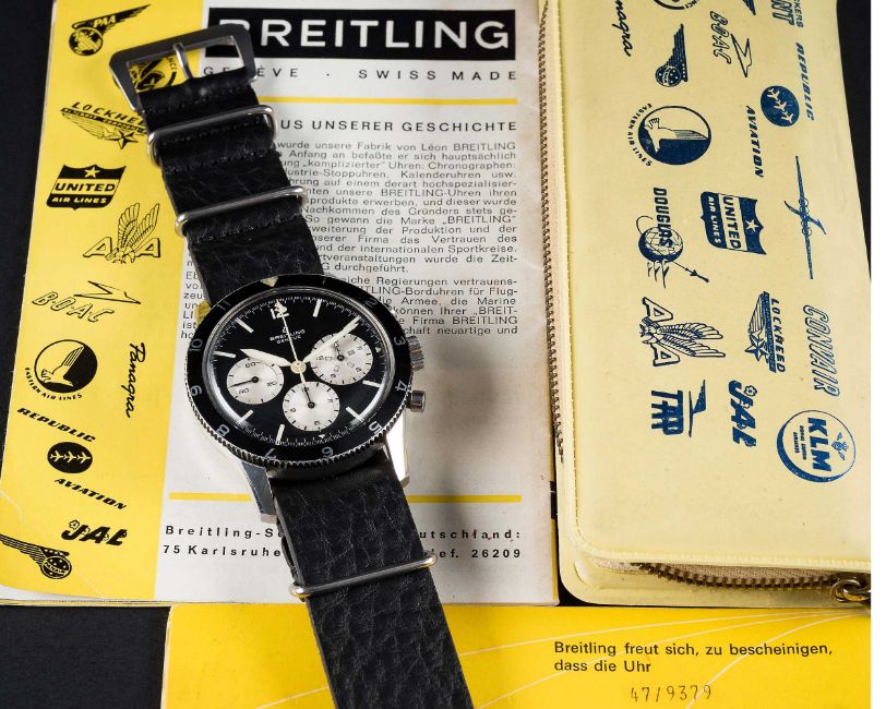A VERY RARE GENTLEMAN'S STAINLESS STEEL BREITLING 765 CO PILOT CHRONOGRAPH WRIST WATCH CIRCA 1965, REF. 765 CP WITH BREITLING POUCH, GUARANTEE DATED 1968 & BROCHURE Movement: 17J, manual wind, Venus cal. 178, signed Breitling Watch Ltd.Case: Diameter approx. 41mm, screw back, signed Breitling Watch Ltd, numbered, 12 hour rotating bezel graduated to each hour, Breitling crown. Strap: Leather. CONDITION REPORTDial: Original dial in excellent condition, showing some very small signs of age.Movement: Working at present.Case: In excellent condition, with some light scratches due to occasional use.Strap/Bracelet: In excellent condition.