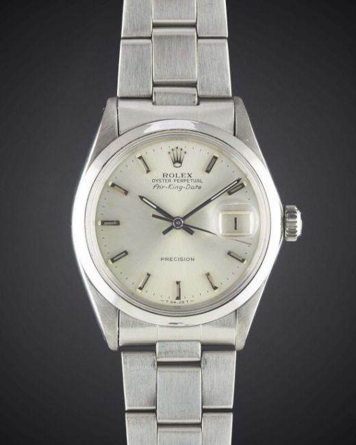 A GENTLEMAN'S STAINLESS STEEL ROLEX OYSTER PERPETUAL AIR KING DATE BRACELET WATCHCIRCA 1972, REF. 5700 / 1500Movement: 26J, automatic, cal. 1520, signed Rolex Geneva, numbered.Case: Diameter approx. 35mm, Oyster case, signed Montres Rolex S.A., dated I.72, numbered, Rolex crown.Bracelet: Rolex Oyster bracelet, numbered 7835/19/361B. CONDITION REPORTDial: Original dial in excellent condition.Movement: Working at present.Case: In very good condition, with some light scratches due to general use.Strap/Bracelet: In very good condition.