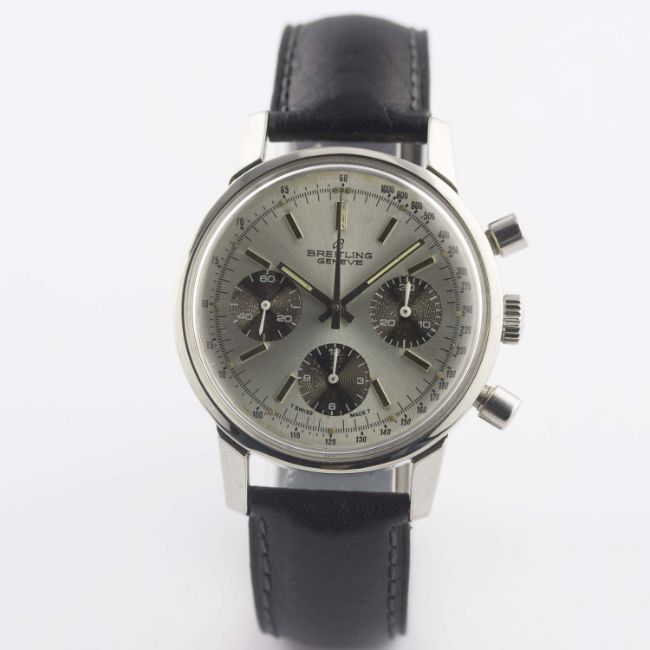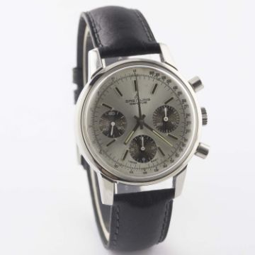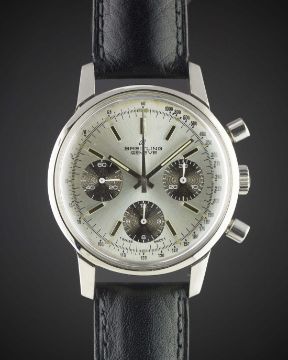 A GENTLEMAN'S STAINLESS STEEL BREITLING "LONG PLAYING" CHRONOGRAPH WRIST WATCH CIRCA 1974, REF. 815 WITH "PANDA" DIAL WITH "TROPICAL" REGISTERSMovement: 17J, manual wind, Valjoux cal. 7736, signed Breitling Watch Ltd. Case: Diameter approx. 38mm, snap back, signed Breitling, numbered, dust cover, Breitling crown.Strap: Leather. CONDITION REPORTDial: Original dial in good condition, showing some signs of age.Movement: Working at present.Case: In very good condition, with some small scratches, case back engraving showing some wear due to general use.Strap/Bracelet: In excellent condition.