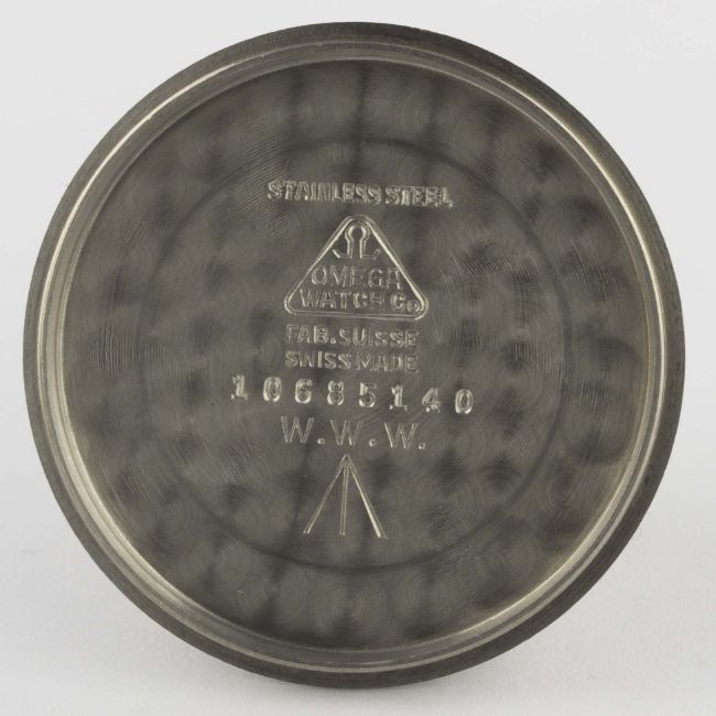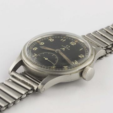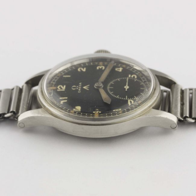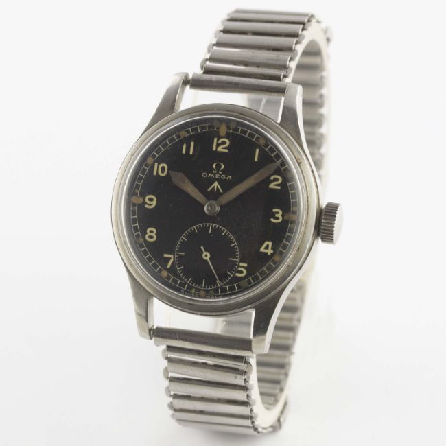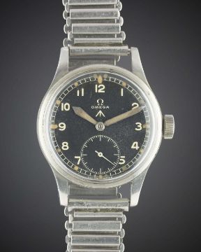 A GENTLEMAN'S STAINLESS STEEL BRITISH MILITARY OMEGA W.W.W. BRACELET WATCH CIRCA 1940s, PART OF THE "DIRTY DOZEN" Movement: 15J, manual wind, cal. 30T2, signed Omega, numbered.Case: Diameter approx. 35mm, fixed bars, screw back, signed Omega Watch Co, issue markings W.W.W. ^ Y20941 10685140.Bracelet: Bonklip bracelet. CONDITION REPORTDial: Original dial in excellent condition, showing some small signs of age.Movement: Working at present.Case: In excellent condition, with some small scratches due to use.Strap/Bracelet: In good condition, with some scratches and wear due to use.
