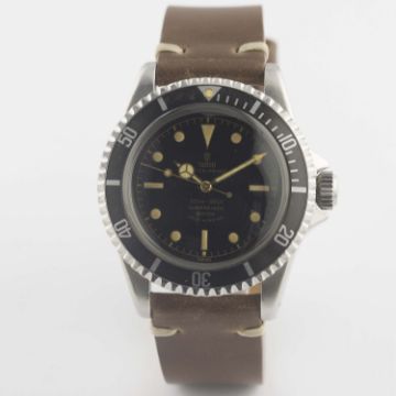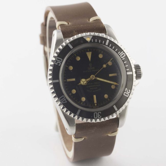 A VERY RARE GENTLEMAN'S STAINLESS STEEL ROLEX TUDOR OYSTER PRINCE SUBMARINER WRIST WATCHCIRCA 1962, REF. 7928 PCG WITH GILT CHAPTER RING EXCLAMATION POINT DIAL, ACCOMPANIED BY TUDOR BOX & OPEN GUARANTEE Movement: 17J, automatic, "butterfly" rotor, signed Tudor Auto-Prince.Case: Diameter approx. 40mm, Oyster case, pointed crown guards, signed Montres Tudor S.A., dated III.62, numbered, 60 minute rotating bezel, Rolex crown.Strap: Leather. CONDITION REPORTDial: Original dial in excellent condition, showing some small signs of age.Movement: Working at present.Case: In excellent condition, with light scratches due to general use.Strap/Bracelet: In excellent condition.
