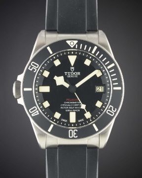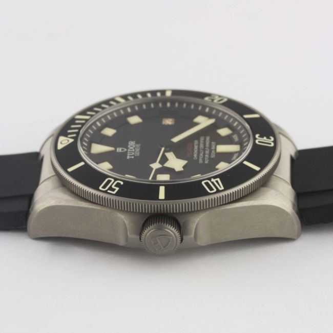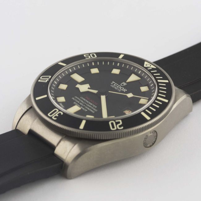 A GENTLEMAN'S TITANIUM TUDOR PELAGOS LHD WRIST WATCHDATED 2017, REF. 25610TNL NUMBERED EDITION, ACCOMPANIED BY THE ORIGINAL BOX, GUARANTEE, BOOKLETS & TITANIUM BRACELET Movement: Automatic chronometer, cal. MT5612, signed Tudor.Case: Diameter approx. 42mm, screw back case, signed Tudor Manufacture, numbered, gas escape valve, 60 minute rotating bezel, original crown.Strap: Original Tudor rubber strap & titanium bracelet. CONDITION REPORTDial: Original dial in excellent condition.Movement: Working at present.Case: In excellent condition, with some light scratches due to general use.Strap/Bracelet: Strap is in very good condition, bracelet is excellent and appears unworn.