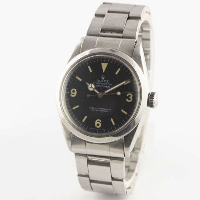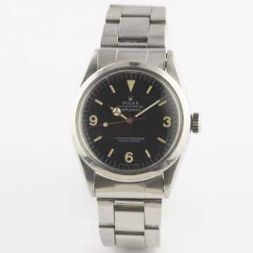 A GENTLEMAN'S STAINLESS STEEL ROLEX OYSTER PERPETUAL EXPLORER BRACELET WATCHCIRCA 1963, REF. 1016 WITH LATER PERIOD ROLEX REPLACEMENT MATT TRITIUM DIALMovement: 26J, automatic chronometer, cal. 1560, signed Montres Rolex S.A., numbered.Case: Diameter approx. 40mm, Oyster case, signed Montres Rolex S.A., dated II.63, numbered, Rolex crown.Bracelet: Rolex Oyster bracelet, numbered 7836/358. CONDITION REPORTDial: Rolex replacement dial in excellent condition.Movement: Working at present.Case: In fair condition, some corrosion on the inside of the case middle and back.Strap/Bracelet: In excellent condition.