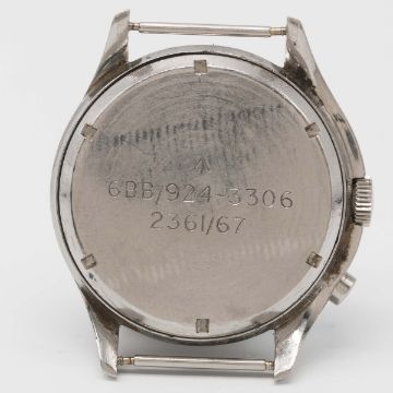 A GENTLEMAN'S STAINLESS STEEL BRITISH MILITARY LEMANIA SINGLE BUTTON ROYAL NAVY CHRONOGRAPH WRIST WATCH DATED 1967Movement: 17J, manual wind, cal. 2220, signed Lemania Watch Co, numbered.Case: Diameter approx. 40mm, asymmetric, screw back, numbered, issue markings ^ 6BB/924-3306 2361/67.Strap: NATO. CONDITION REPORTDial: Original dial in excellent condition.Movement: Working at present.Case: In good condition, with small scratches due to use.Strap/Bracelet: In excellent condition.