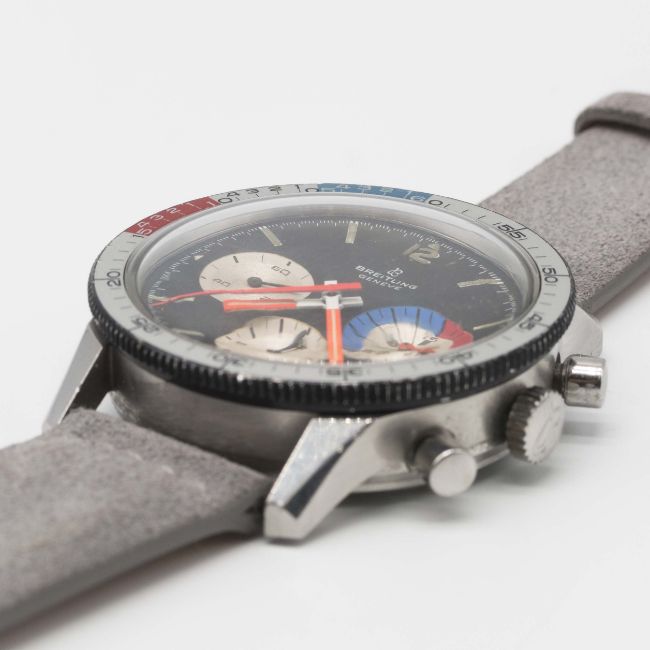 A VERY RARE GENTLEMAN'S STAINLESS STEEL BREITLING "CO PILOT" YACHTING CHRONOGRAPH WRIST WATCH CIRCA 1969, REF. 7650 WITH PERIOD BREITLING MANUALMovement: 17J, manual wind, Venus cal. 178, signed Breitling Watch Ltd.Case: Diameter approx. 43mm, screw back, signed Breitling Watch Ltd, numbered 1,2xx,xxx, rotating yachting bezel, Breitling crown. Strap: Suede. CONDITION REPORTDial: Original dial in excellent condition, registers showing small signs of age.Movement: Working at present.Case: In excellent condition, with some light scratches due to general use.Strap/Bracelet: In excellent condition.