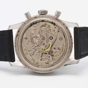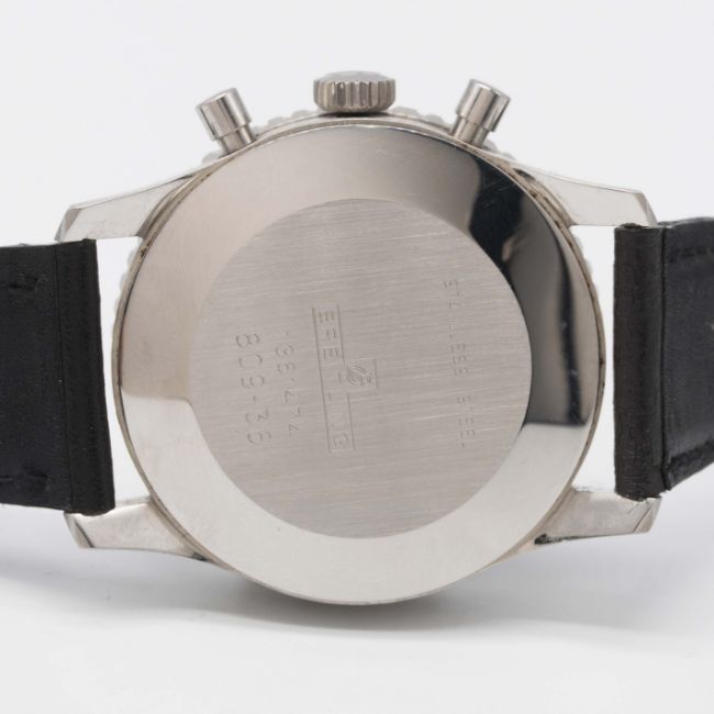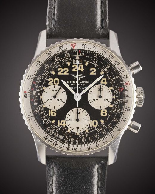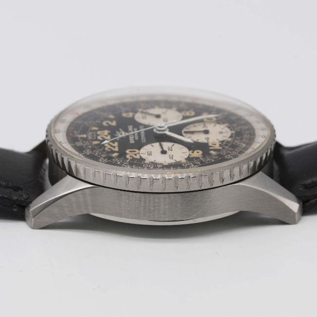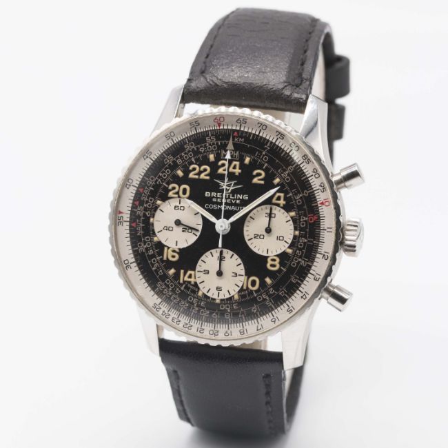 A RARE GENTLEMAN'S STAINLESS STEEL BREITLING COSMONAUTE CHRONOGRAPH WRIST WATCH CIRCA 1971, REF. 809-36 WITH VALJOUX BASE CALIBRE 7736 MOVEMENT Movement: 17J, manual wind, Valjoux base cal. 7736, signed Breitling Watch Ltd.Case: Diameter approx. 41mm, snap back, signed Breitling, numbered, slide rule bezel, Breitling crown.Strap: Leather strap with Breitling "twin jet" pin buckle. CONDITION REPORTDial: Original dial in excellent condition.Movement: Working at present.Case: In excellent condition, with some light scratches due to occasional use.Strap/Bracelet: In excellent condition.