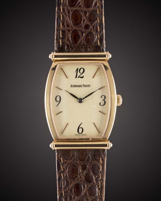 A LADIES 18K SOLID ROSE GOLD AUDEMARS PIGUET CARNEGIE WRIST WATCH DATED 2002, REF. 14941 OR/009 WITH ORIGINAL BOX & PAPERSMovement: Manual wind, cal. 2080, signed Audemars Piguet, numbered. Case: Approx. 35mm by 25mm, signed Audemars Piguet Carnegie, numbered, 18k hallmarks, AP crown. Strap: Original AP leather strap & 18k solid pink gold pin buckle. CONDITION REPORTDial: Original dial in excellent condition.Movement: Working at present.Case: In excellent condition, with light scratches due to general use.Strap/Bracelet: In good condition.