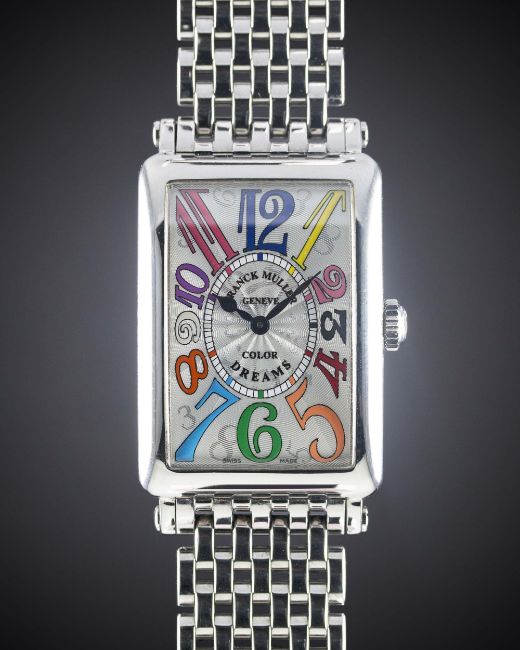 A MID SIZE STAINLESS STEEL FRANCK MULLER COLOR DREAMS BRACELET WATCHCIRCA 2000s, REF. 952 QZ COL DRMMovement: Quartz, signed Franck Muller.Case: Approx. 44mm by 26mm, signed Franck Muller Color Dreams, numbered, Franck Muller crown.Bracelet: Original Franck Muller bracelet, total length approx. 160mm.CONDITION REPORTDial: Original dial in excellent condition.Movement: Working at present.Case: In excellent condition.Strap/Bracelet: In excellent condition.