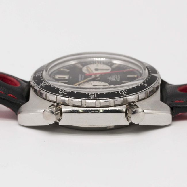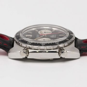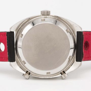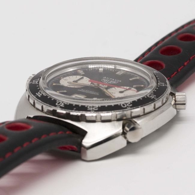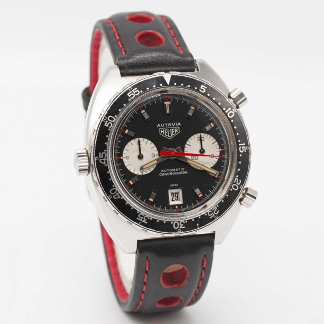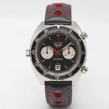 A GENTLEMAN'S STAINLESS STEEL HEUER AUTAVIA CHRONOGRAPH WRIST WATCHCIRCA 1970s, REF. 1163 "RIDGED" MARKER DIAL WITH "3-6-9-12" MINUTES REGISTERMovement: 17J, automatic, cal. 11, signed Heuer.Case: Width approx. 42mm, screw back, signed Heuer-Leonidas SA, numbered 27x,xxx, MH rotating bezel, Heuer crown & pushers.Strap: Perforated leather.CONDITION REPORTDial: Original dial in excellent condition, showing some small signs of age.Movement: Working at present.Case: In very good condition, with some small scratches due to general use.Strap/Bracelet: In excellent condition.