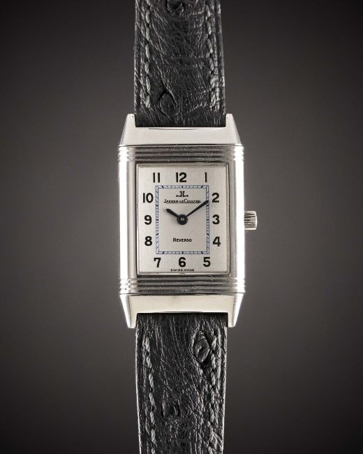 A LADIES STAINLESS STEEL JAEGER LECOULTRE REVERSO WRIST WATCHCIRCA 2000, REF. 260.8.86Movement: Manual wind, signed Jaeger-LeCoultre.Case: Approx. 33mm by 20mm, clean reverse side, signed Jaeger-LeCoultre Reverso, numbered, JLC crown.Strap: Leather with JLC pin buckle.CONDITION REPORTDial: Original dial in excellent condition.Movement: Working at present.Case: In excellent condition, with some light scratches due to general use.Strap/Bracelet: In excellent condition.