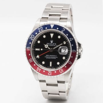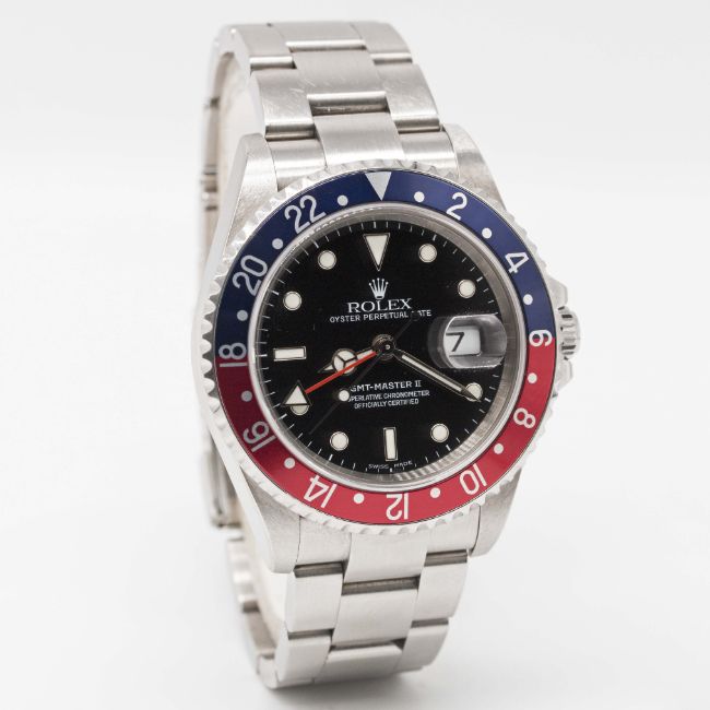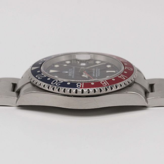 A GENTLEMAN'S STAINLESS STEEL ROLEX OYSTER PERPETUAL DATE GMT MASTER II "PEPSI" BRACELET WATCHCIRCA 2004, REF. 16710TMovement: 31J, automatic chronometer, quick-set date, cal. 3185, signed Rolex, numbered.Case: Diameter approx. 40mm, Oyster case with no lug holes, signed Montres Rolex S.A., F serial no., 24 hour rotating "Pepsi" bezel, sapphire crystal, Rolex crown.Bracelet: Rolex Oyster bracelet with flip-lock clasp, numbered OP1 78790A.CONDITION REPORTDial: Original dial in excellent condition.Movement: Working at present.Case: In excellent condition, with some small scratches due to general use.Strap/Bracelet: In excellent condition, with some light scratches due to general use.