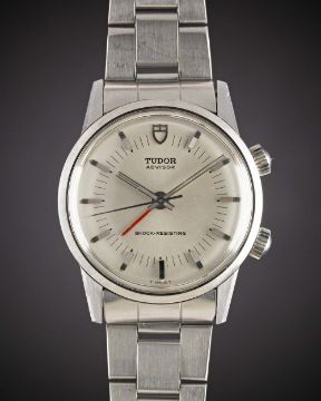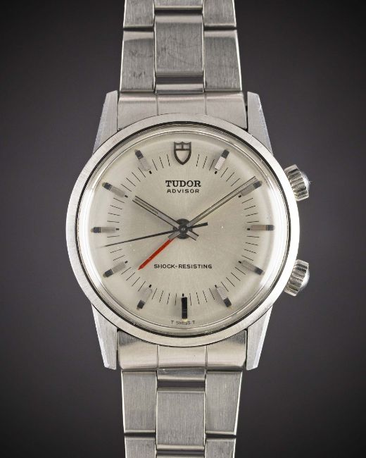 A GENTLEMAN'S STAINLESS STEEL ROLEX TUDOR ADVISOR ALARM BRACELET WATCHCIRCA 1983, REF. 10050Movement: 17J, manual wind, cal. 3475, signed Tudor. Case: Diameter approx. 35mm, Oyster case with two part case back, signed Tudor, numbered 98x,xxx.Bracelet: Rolex Oyster bracelet, numbered 7835/19/361, dated 2.72.CONDITION REPORTDial: Original dial in excellent condition.Movement: Working at present.Case: In excellent condition, with some light scratches due to general use.Strap/Bracelet: In excellent condition, with some light scratches due to general use.