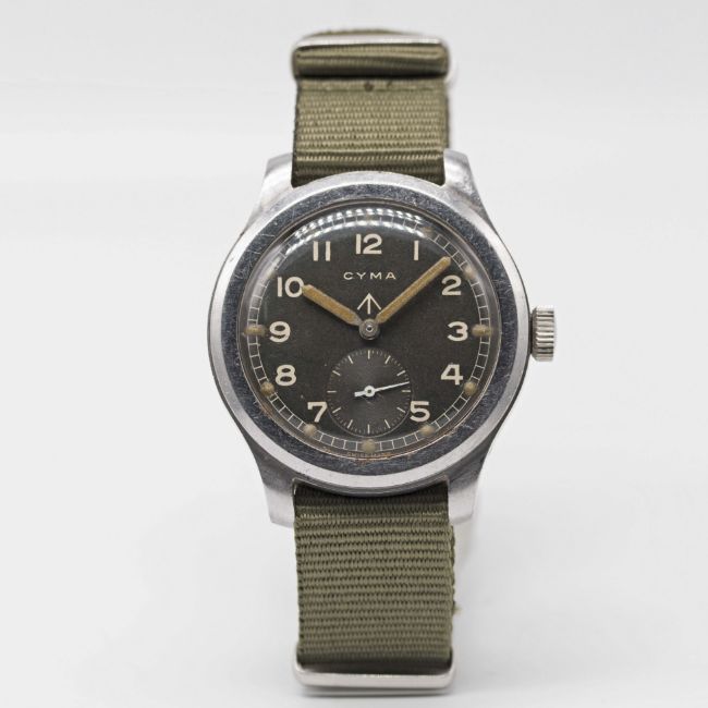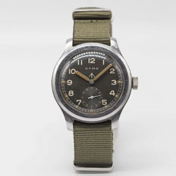 A GENTLEMAN'S STAINLESS STEEL BRITISH MILITARY CYMA W.W.W. WRIST WATCHCIRCA 1940s, PART OF THE "DIRTY DOZEN"Movement: 15J, manual wind, cal. 234, signed Cyma, numbered.Case: Diameter approx. 38mm, fixed bars, screw back, issue markings ^ W.W.W. P15619 20619, dust cover.Strap: NATO.CONDITION REPORTDial: Original dial in excellent condition, showing some small signs of age.Movement: Working at present.Case: In excellent condition, with some small scratches due to use.Strap/Bracelet: In excellent condition.