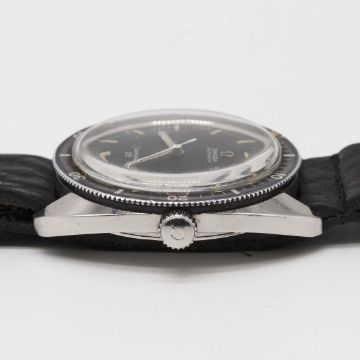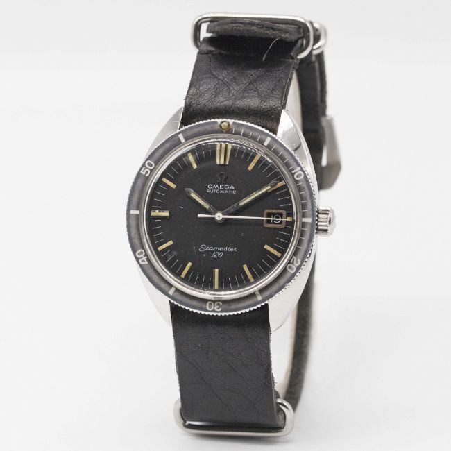A GENTLEMAN'S STAINLESS STEEL OMEGA SEAMASTER 120 DIVERS WRIST WATCHCIRCA 1975, REF. 166.027 WITH "GHOST" BEZELMovement: 17J, automatic, cal. 563, signed Omega Watch Co, numbered 33,xxx,xxx.Case: Diameter approx. 37mm, screw back, Seamaster emblem on case back, signed Omega Watch Co, faded 60 minute rotating bezel, Omega crown.Strap: Leather NATO.CONDITION REPORTDial: Original dial in excellent condition.Movement: Working at present.Case: In very good condition, with some light scratches due to general use.Strap/Bracelet: In excellent condition.
