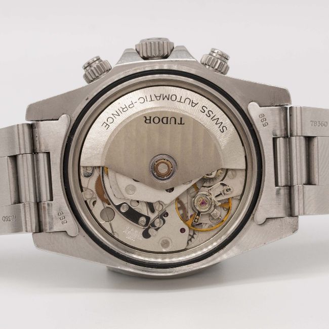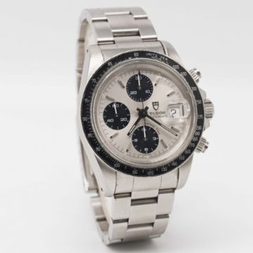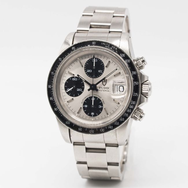 A GENTLEMAN'S STAINLESS STEEL ROLEX TUDOR OYSTERDATE AUTOMATIC CHRONO TIME "BIG BLOCK" CHRONOGRAPH BRACELET WATCHCIRCA 1992, REF. 79160 WITH "PANDA DIAL"Movement: 17J, automatic, cal. 7750, signed Tudor Automatic-Prince.Case: Diameter approx. 40mm, Oyster case, signed Montres Tudor S.A., numbered B44x,xxx, units per hour acrylic bezel, Rolex triplock crown & screw-down pushers.Bracelet: Original Tudor Oyster bracelet, numbered P4/78360/589.CONDITION REPORTDial: Original dial in excellent condition.Movement: Working at present.Case: In very good condition, with some small scratches due to general use, some small signs of age to the bezel.Strap/Bracelet: In excellent condition, with light scratches due to general use.
