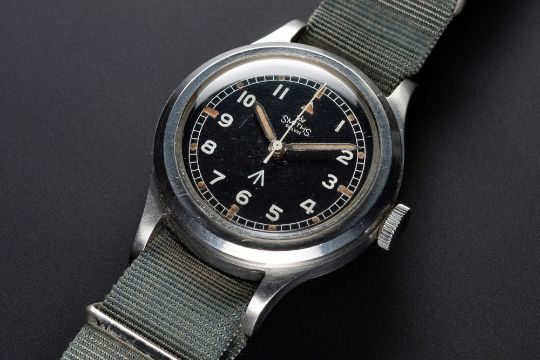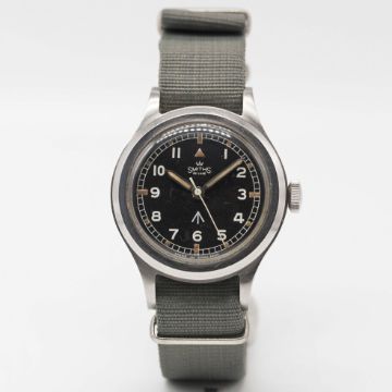 A VERY RARE GENTLEMAN'S STAINLESS STEEL AUSTRALIAN MILITARY SMITHS DE LUXE WRIST WATCHDATED 1961, WITH ORIGINAL "THIN ARROW" DIAL, THOUGHT TO HAVE BEEN ISSUED TO THE ROYAL AUSTRALIAN NAVY (RAN) FLEET AIR ARM OR ROYAL AUSTRALIAN AIR FORCE (RAAF)Movement: 17J, manual wind, cal. 27.CS., signed Made in England, numbered.Case: Diameter approx. 36mm, screw back, fixed bars, issue markings ^ 6645-66-010-6032 No. 309/61, dust cover. Strap: NATO.CONDITION REPORTDial: Original dial in excellent condition, showing some small signs of age.Movement: Working at present.Case: In excellent condition, with small scratches due to use.Strap/Bracelet: In very good condition.