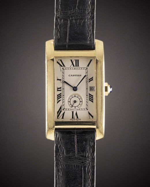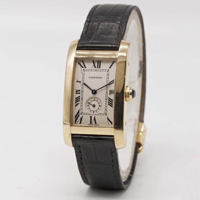 A GENTLEMAN'S SIZE 18K SOLID GOLD CARTIER TANK AMERICAINE WRIST WATCH