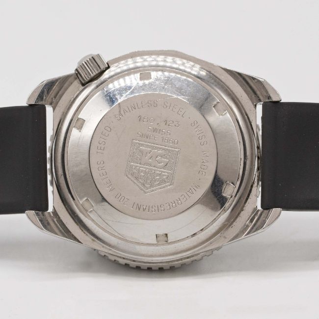 Case: Diameter approx. 41mm, screw back, signed TAG Heuer with emblem embossed on case back, 60 minute rotating bezel, Heuer screw-down crown.