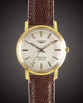 A GENTLEMAN'S 18K SOLID GOLD LONGINES FLAGSHIP AUTOMATIC WRIST WATCH