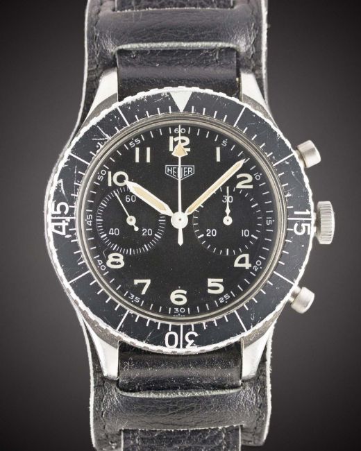 A GENTLEMAN'S STAINLESS STEEL GERMAN MILITARY HEUER "BUND" FLYBACK CHRONOGRAPH WRIST WATCH