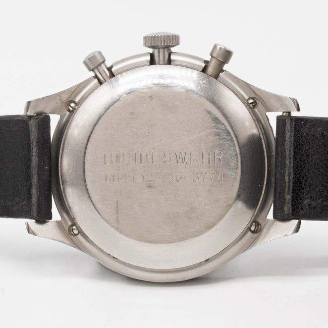 Case: Diameter approx. 43mm, "clamshell" type case with four screws, numbered 4,9xx, issue markings BUNDESWEHR 6645-12-146-3774, 60 minute rotating bezel.