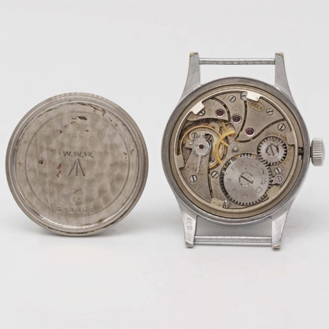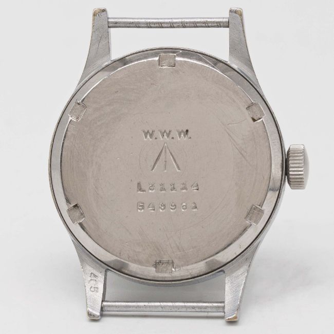Case: Diameter approx. 36mm, fixed bars, nickel plated case with steel screw back, issue markings W.W.W. ^ L31114 548961, lug numbered 405.