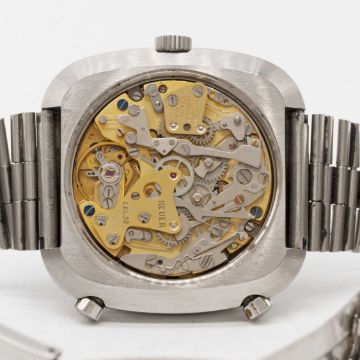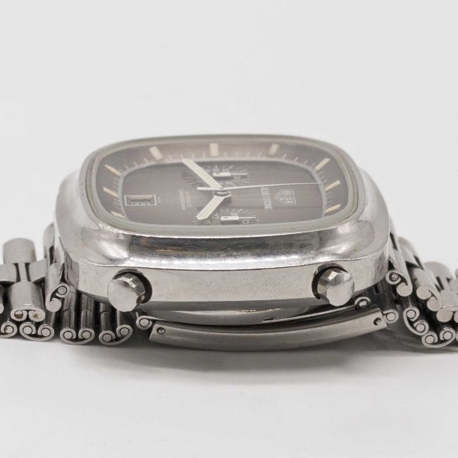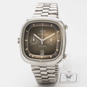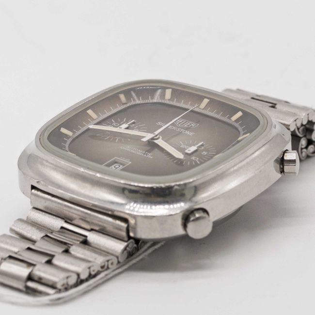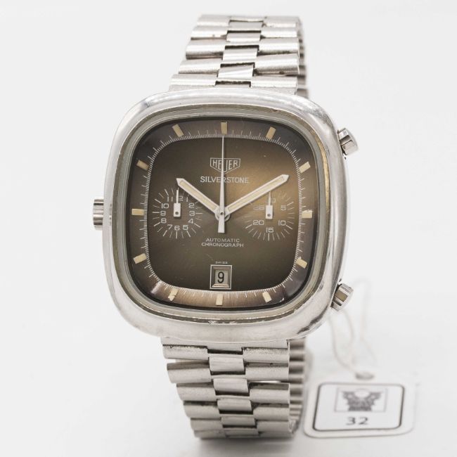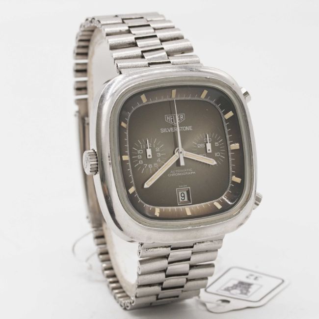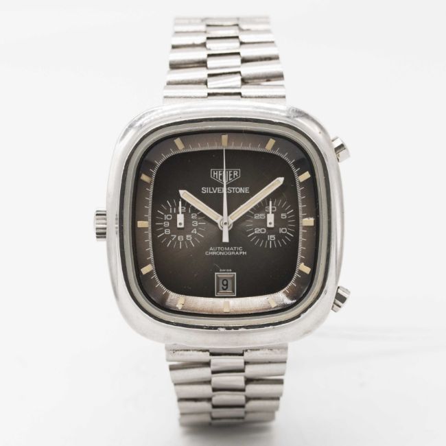 A GENTLEMAN'S STAINLESS STEEL HEUER SILVERSTONE AUTOMATIC CHRONOGRAPH BRACELET WATCHCIRCA 1970s, REF. 110.313F WITH "FUME" DIALMovement: 17J, automatic, cal. 12, signed Heuer.Case: Width approx. 42mm, screw back, signed Heuer-Leonidas SA, numbered 30x,xxx / C.P2xx-x, Heuer crown & pushers.Bracelet: NSA bracelet.CONDITION REPORTDial: Original dial in very good condition, showing some small signs of age.Movement: Running at present.Case: In very good condition, with some small scratches due to general use.Strap/Bracelet: In good condition, with light scratches due to general use.The timekeeping and accuracy of this watch has not been tested, therefore cannot be guaranteed.