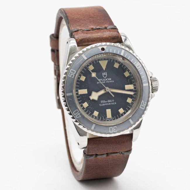 A GENTLEMAN'S STAINLESS STEEL ROLEX TUDOR OYSTER PRINCE "SNOWFLAKE" SUBMARINER WRIST WATCHCIRCA 1977, REF. 9401/0 BLUE DIAL & "GHOST" BEZEL Movement: 25J, automatic, cal. 2776, signed Tudor Automatic-Prince.Case: Diameter approx. 40mm, Oyster case, signed Montres Tudor S.A., numbered 86x,xxx, faded 60 minute rotating "ghost" bezel, Rolex triplock crown.Strap: Leather.CONDITION REPORTDial: Original dial in very good condition, showing small signs of age.Movement: Running at present.Case: In very good condition, with small scratches due to general use.Strap/Bracelet: In excellent condition.The timekeeping and accuracy of this watch has not been tested, therefore cannot be guaranteed.