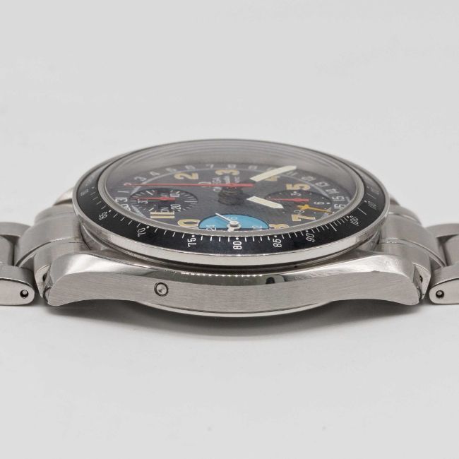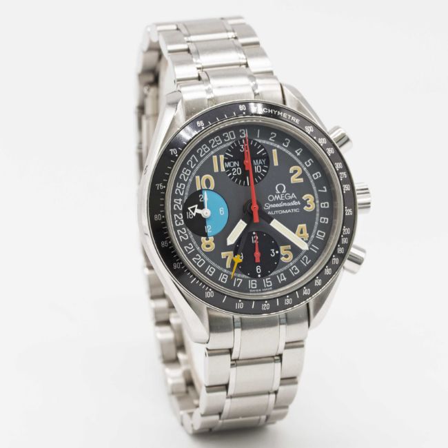 A GENTLEMAN'S STAINLESS STEEL OMEGA SPEEDMASTER "MK 40" TRIPLE CALENDAR AUTOMATIC CHRONOGRAPH BRACELET WATCHCIRCA 1997, REF. 175.0084 FAMED BY BEN CLYMER, FOUNDER OF HODINKEE, AS THE WATCH THAT INSPIRED HIM TO START WRITING ABOUT WATCHESMovement: 25J, automatic, cal. 1151/1152, signed Omega.Case: Diameter approx. 39mm, snap back, Speedmaster emblem embossed on case back, signed Omega, numbered 55,xxx,xxx, tachymetre bezel, Omega crown.Bracelet: Original Omega Speedmaster bracelet, numbered (62) 1560/852.CONDITION REPORTDial: Original dial in excellent condition.Movement: Running at present.Case: In excellent condition, with some light scratches due to general use.Strap/Bracelet: In excellent condition, with some light scratches due to general use.The timekeeping and accuracy of this watch has not been tested, therefore cannot be guaranteed.