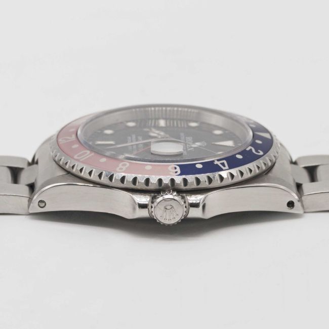 A RARE GENTLEMAN'S STAINLESS STEEL ROLEX OYSTER PERPETUAL DATE GMT MASTER "PEPSI" BRACELET WATCHCIRCA 1997, REF. 16700 "SWISS ONLY" DIALMovement: 31J, automatic chronometer, quick-set date, cal. 3175, signed Montres Rolex S.A., numbered.Case: Diameter approx. 40mm, Oyster case, signed Montres Rolex S.A., U serial no., 24 hour rotating "Pepsi" faded bezel, sapphire crystal, Rolex crown.Bracelet: Original Rolex Oyster bracelet with flip-lock clasp, numbered U11 78790/501B.CONDITION REPORTDial: Original dial in excellent condition.Movement: Running at present.Case: In excellent condition.Strap/Bracelet: In very good condition.The timekeeping and accuracy of this watch has not been tested, therefore cannot be guaranteed.
