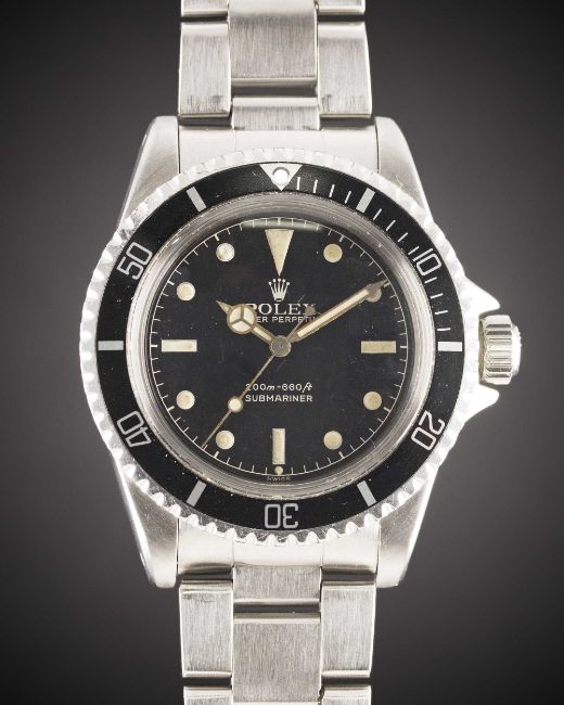 A RARE GENTLEMAN'S STAINLESS STEEL ROLEX OYSTER PERPETUAL SUBMARINER BRACELET WATCHCIRCA 1961, REF. 5512 PCG WITH GILT CHAPTER RING EXCLAMATION POINT DIAL, ACCOMPANIED BY A SECOND-HAND PURCHASE RECEIPT FROM 1998 & INDEPENDENT SERVICE INVOICE FROM 2009 Movement: 25J, automatic, "butterfly" rotor, cal. 1530, signed Rolex Geneva, numbered.Case: Diameter approx. 40mm, Oyster case, signed Montres Rolex S.A., dated II.61, numbered 69x,xxx, pointed crown guards, 60 minute rotating bezel, Rolex triplock crown.Bracelet: Rolex Oyster bracelet, numbered S CL7/78360/580.CONDITION REPORTDial: Original dial in excellent condition, showing some small signs of age.Movement: Running at present.Case: In good condition, with some light scratches due to general use.Strap/Bracelet: In fair condition, with some light scratches due to general use.The timekeeping and accuracy of this watch has not been tested, therefore cannot be guaranteed.