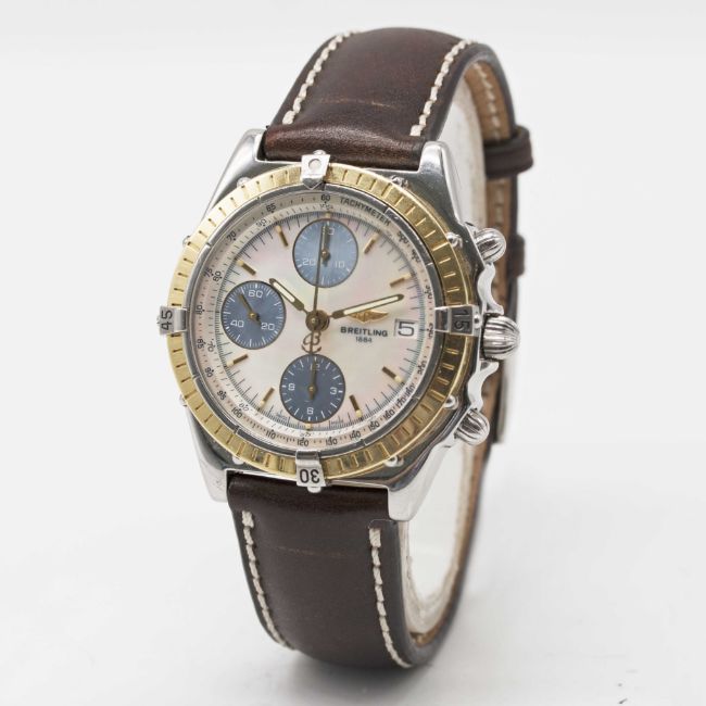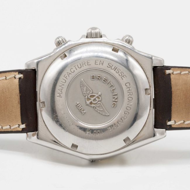 Case: Diameter approx. 40mm, screw back, signed Breitling, Numbered 10,xxx., 60 minute rotating bezel, Breitling crown & pushers.